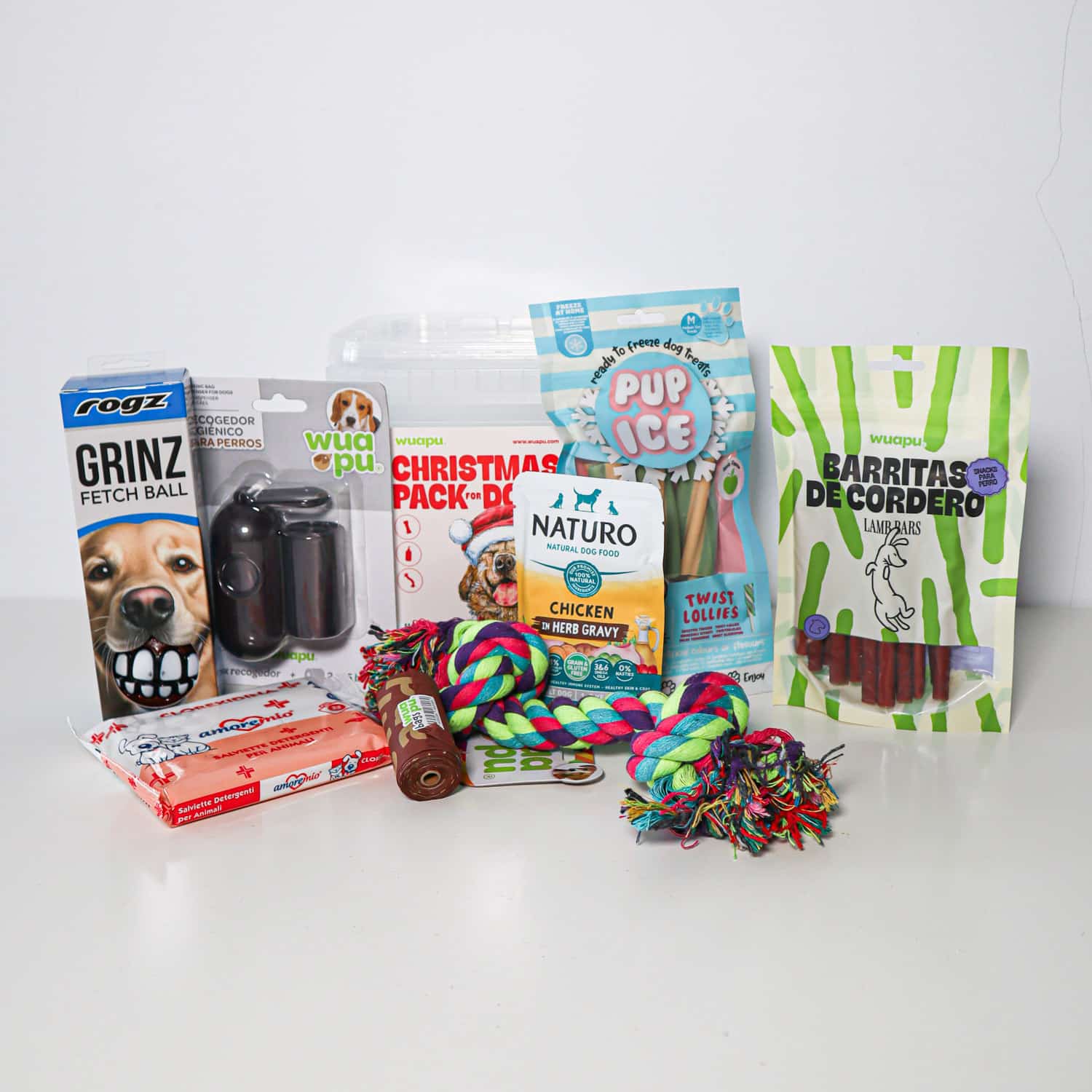 El Wuapu Christmas Pack for Dogs trae una selección de snacks, juguetes y accesorios para que tu perro disfrute estas fiestas a lo grande. ¡Un regalo completo, divertido y lleno de sorpresas navideñas! 🐾